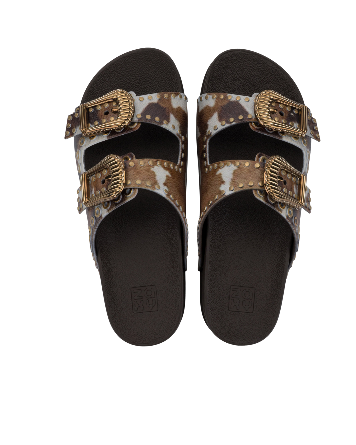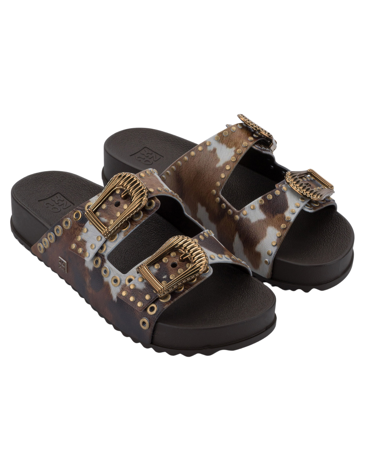 The Zaxy Hold Slide sandal brings a modern and stylish Western mood. The model, with its ornate buckles and metallic eyelets, now gets an irresistible update: cow print! This current favorite print, which has become a hit among fashionistas, arrives to make the Zaxy Hold even more trendy.